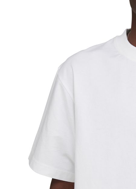 This short-sleeved t-shirt features a classic round neck and ribbed detailing for added texture. The front logo adds a touch of branding, while the straight cut and loose fit make it a comfortable and versatile choice for everyday wear. Made from high-quality materials, this t-shirt is both stylish and easy to pair with any outfit.