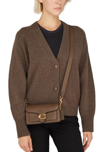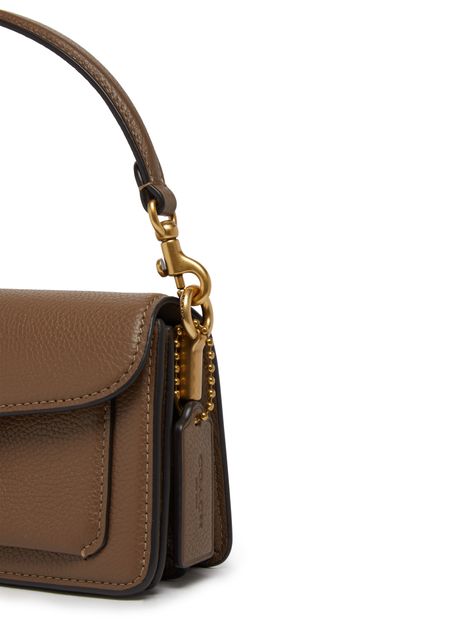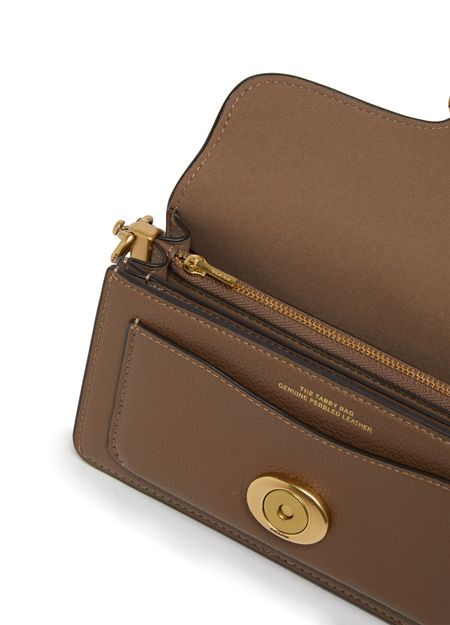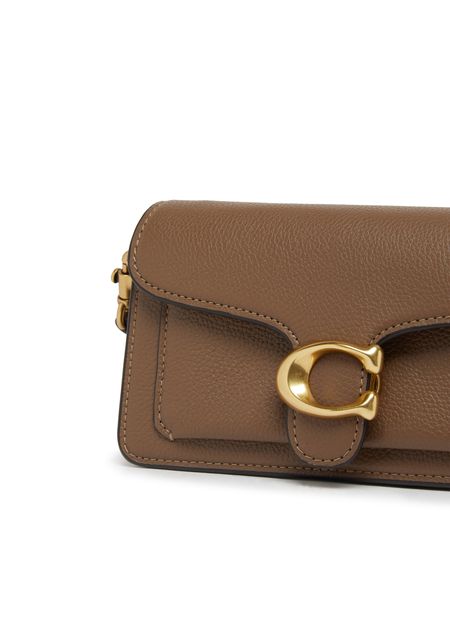 • Description : metallic logo on the front, logo in gold letters, snap-button fastening, flap closure, gold finish, hand carried, worn on the shoulder, detachable strap, thin strap, single handle.