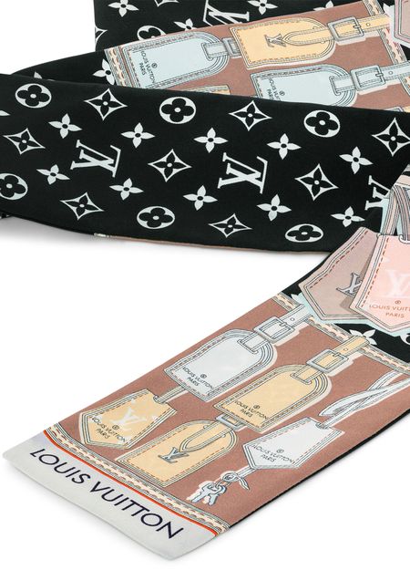 The fresh, contemporary design of the Tag Me bandeau pays homage to the House’s beloved theme of travel. Printed on 100% silk, a colorful array of tags evokes Louis Vuitton’s legacy as a luggage maker, combined with the heritage Monogram pattern. A richly symbolic accessory, and a veritable invitation to the pleasures of travel.