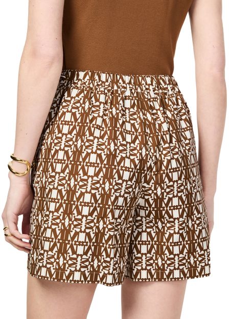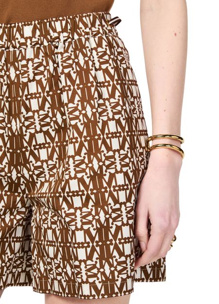 Max Mara's Taiga cotton poplin printed shorts showcase an all-over print that captivates the eye. Crafted with visible stitching, these shorts feature a short length and an elasticated waist for ultimate comfort. The low-waist fit adds a trendy touch, making them perfect for warm days and casual outings.