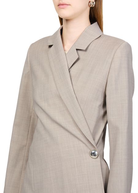Unveil Loewe's tailored jacket in wool, a blend of style and comfort. This regular fit jacket with button fastening and long sleeves offers effortless elegance. Crafted in luxurious wool, it’s a versatile piece that transitions seamlessly from casual outings to more formal occasions.
