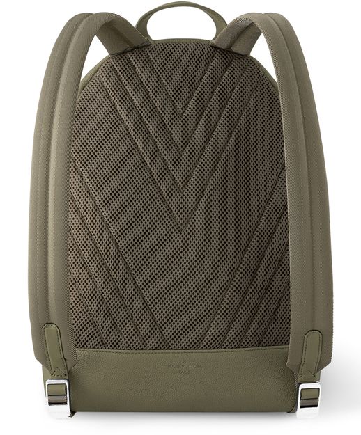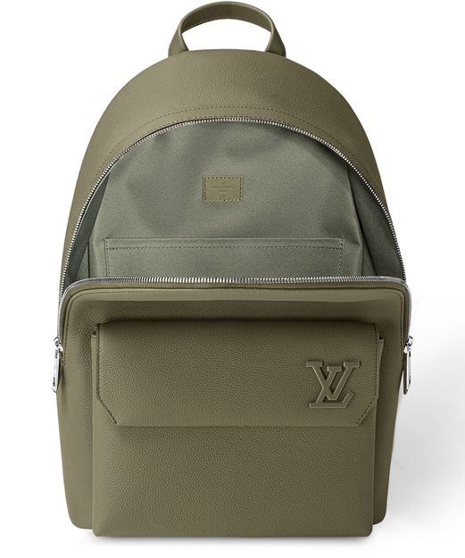 Comfortable and practical, this new backpack emanates discreet contemporary elegance. Crafted in supple LV Aerogram leather in a cool shade of khaki, it celebrates the spirit of travel and aviation with details including a stamp-like signature tag and beveled corners on the front flap, recalling an old-fashioned aerogram.