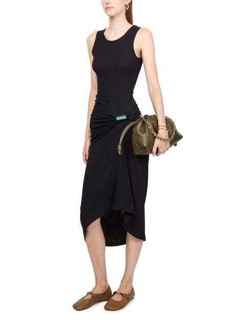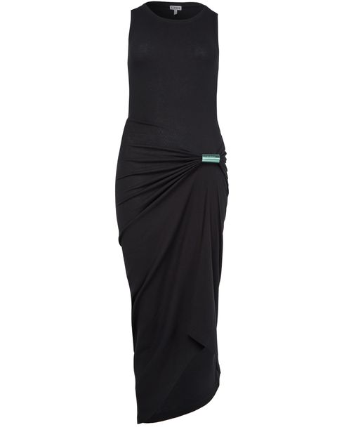 Reveal Loewe's tank dress, a stunning midi with draped detail and a side slit. Its slim fit and round neck design enhance the silhouette, while the sleeveless style adds a touch of elegance. Perfect for any occasion, this dress combines comfort with chic, modern flair.