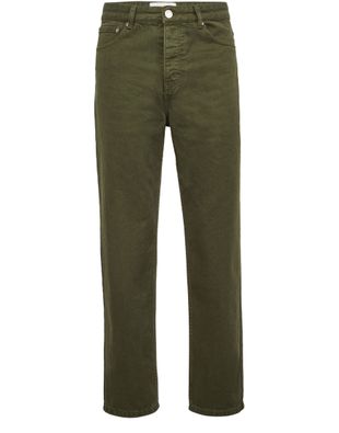 Ami's Tapered fit jeans offer a low-waisted fit with a straight cut that flatters every silhouette. Designed with a buttoned and concealed zipper closure, they feature belt loops and visible stitching for a classic touch. The five-pocket style and below-knee length make these denim jeans a versatile wardrobe essential.