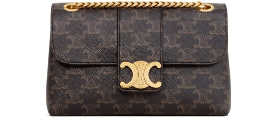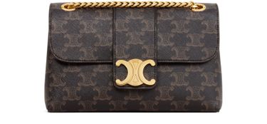 Celine's Teen Celine Victoire bag in Triomphe canvas is a stylish companion for the modern individual. With its luxurious gold finishing, it effortlessly transitions from cross-body to shoulder carry. The Triomphe snap button closure reveals two main compartments, an inner flat pocket, and a zipped pocket, ensuring elegance meets functionality.