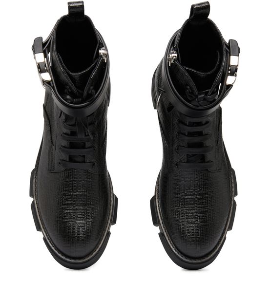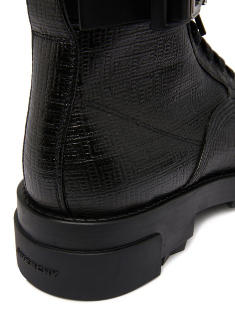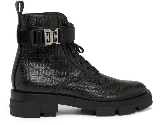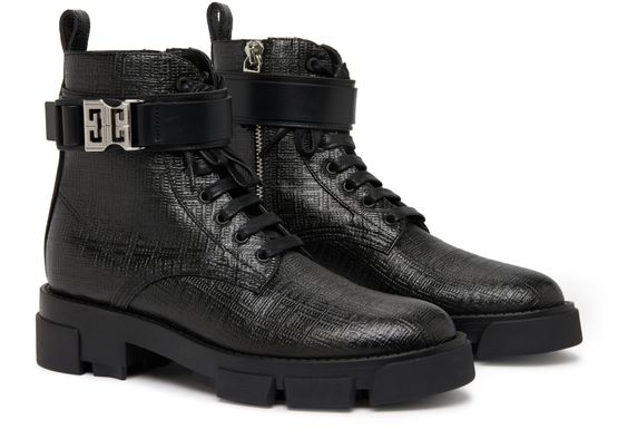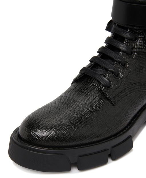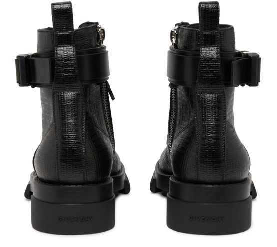 • Description : Lace-up ankle boots, smooth leather, round toe, ankle strap, brand's signature buckle, leather loop at the back for easy slipping on and off, thick, notched sole.