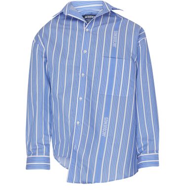 Jacquemus's Cuadro Shirt is a stylish long-sleeved piece featuring a front buttoned closure and a classic shirt collar. With cuffed sleeves and buttoned cuffs, it offers a casual yet polished look. The striped print, along with patch pockets and a breast pocket, showcases the front logo and printed logo at the back label.