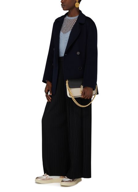• Description : Smooth leather bag, chain strap, wide detachable strap, metallic logo on the front, embossed logo, zippered interior pocket, flap closure, hand carried, worn on the shoulder or crossbody.