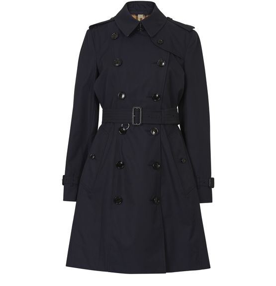 Our slimmest trench coat, with narrow shoulders and a nipped-in waist. The fitted archive-inspired style is woven in our signature gabardine with a Vintage check lining. Wear it belted to accentuate the softly flared silhouette.