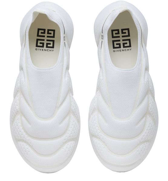 Givenchy's TK-360 plus sneakers feature a convenient pull-on design for easy wear. The sneakers are crafted with a thick outer sole for added comfort and durability. The iconic logo is subtly displayed on the side, adding a touch of brand recognition to the sleek and modern design.