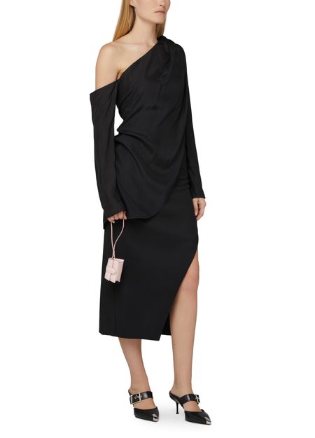 asymmetric neckline.