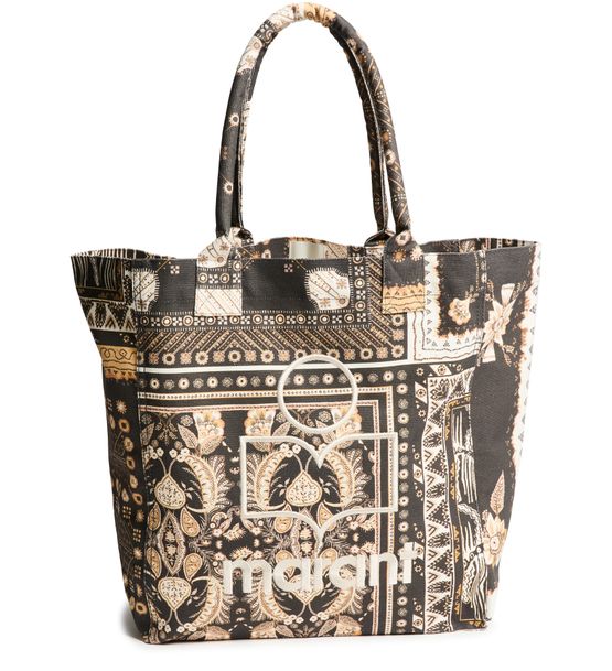 Description : shopper / tote bag, single compartment, appliquéd logo, embroidered logo, front logo, visible topstitching, all-over print, printed, hand carried, worn on the shoulder.