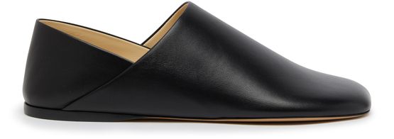 Loewe's Toy slippers are crafted from smooth leather with a rounded square toe, very thin sole, and flat heel. The logo is discreetly placed at the back for a touch of branding.