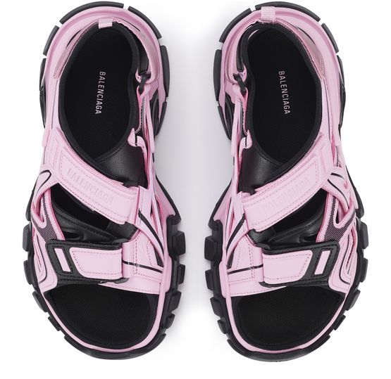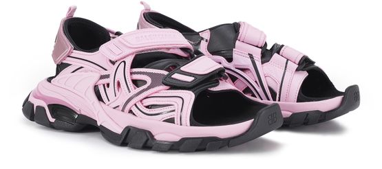 Balenciaga presents these strappy sandals. These open, adjustable shoes have a modern design that combines a playful shape with a flexible, stylized sole.