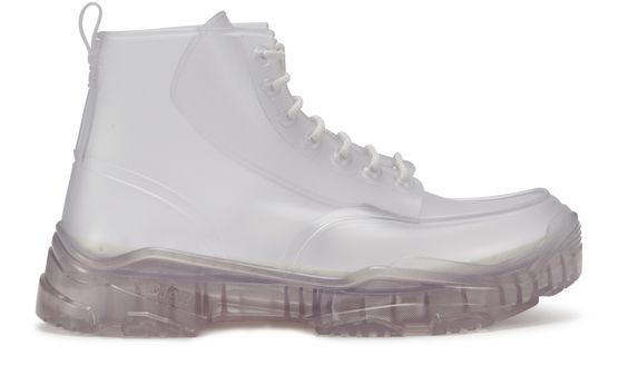 These translucent rubber boots are a contemporary take on classic industrial styles, inspired by the art of Daniel Arsham. Constructed from translucent rubber, the boots are chunky and durable and set on a multi-part tread sole stamped with the ‘Dior’ signature on the side. Try pairing them with bold socks to create your own look.