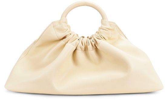 • Description : Visible stitching, pleated details, two leather handles, vegan leather, lined, worn in the hand.