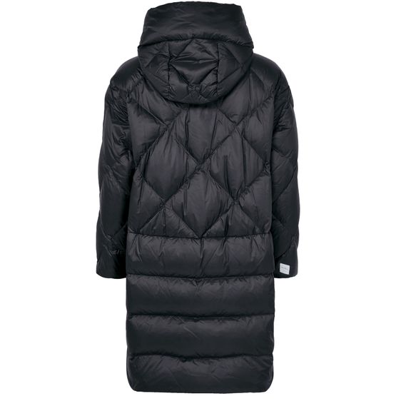 • Description : Geometric details, knee length, long-sleeved, side pockets, zipper closure, padded texture.