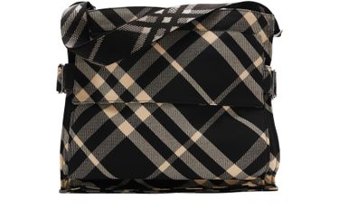 Burberry's Trench Check tote bag showcases a sophisticated checked pattern with a stylish flap closure. Its single handle and wide strap allow for versatility, easily worn on the shoulder or adjusted for comfort. This tote effortlessly combines elegance and functionality, making it an essential accessory for any occasion.