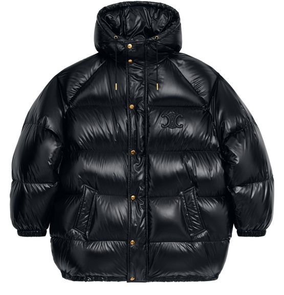 high neck with hood, adjustable drawstrings and Celine Paris-engr,