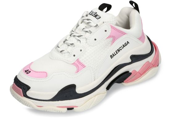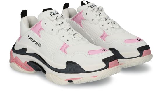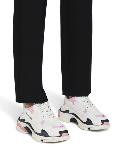With the Triple S sneakers, Balenciaga offers a design that mixes femininity and streetwear spirit. These lace-up sneakers combine materials, shapes and colors. A distinctive, slightly wedged sole adds dynamism to these sneakers.