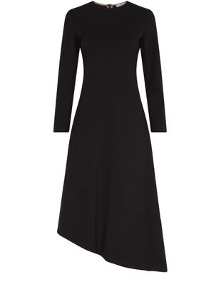 Max Mara's Ulla asymmetric dress showcases an elegant midi silhouette with a fitted waist and an A-line cut. Its long sleeves and crew neck create a refined look, while the concealed back zipper closure ensures a seamless finish. The appliquéd logo and visible stitching add a touch of sophistication to this timeless piece.