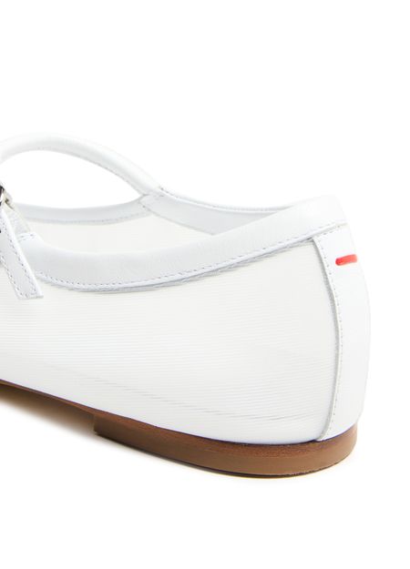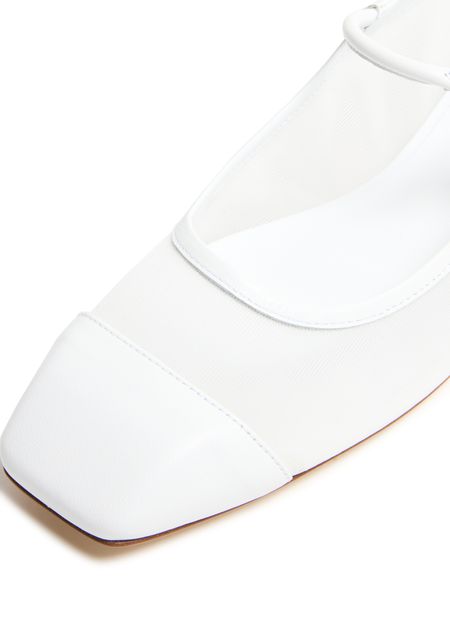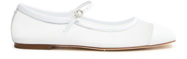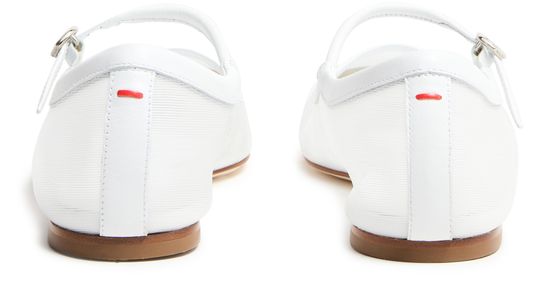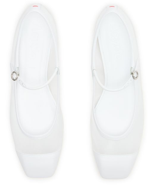 Elevate Aeyde's Uma nappa leather ballet flats with their closed square toe and flat heel, effortlessly blending style with comfort. Crafted from bi-material and embellished with a buckled strap closure, visible stitching, and a logo at the back, these flats are finished with a modern silver touch.