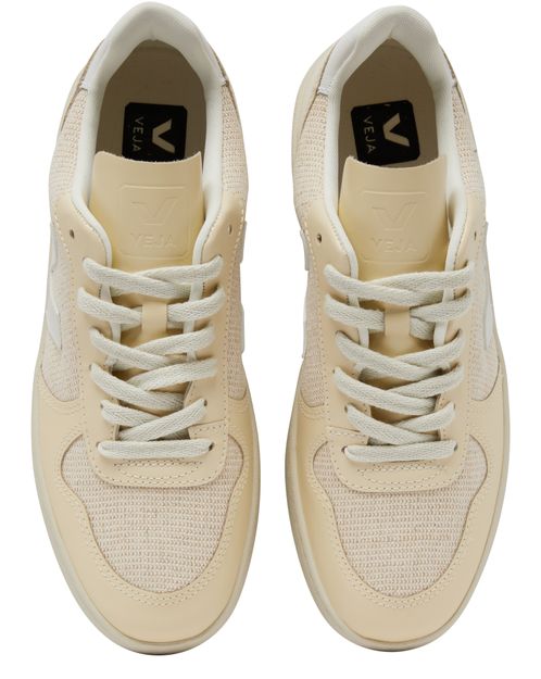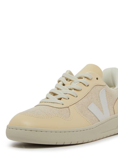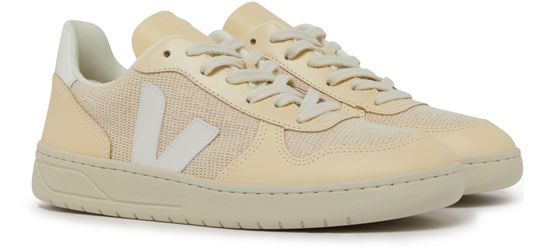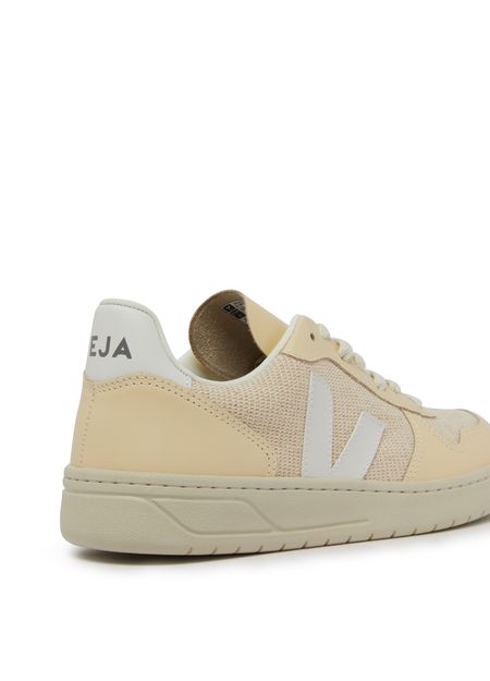 Veja's V-10 sneakers showcase a classic round toe and a closed design, perfect for everyday wear. The logo on the tongue adds a touch of authenticity, while the logo at the back and on the side enhance its stylish appeal. Experience comfort and sustainability with every step you take.