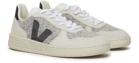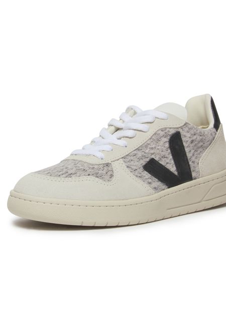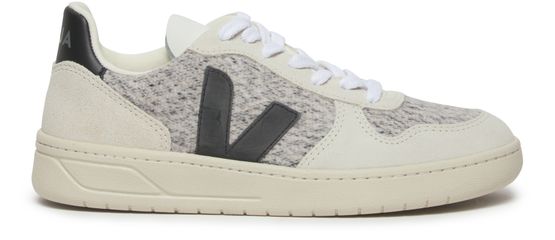 Veja's V-10 Trainers showcase a sleek silhouette with a contrasting logo that stands out effortlessly. Crafted from a collection of textures, these trainers blend style and sustainability. The thick outer sole offers durability and comfort, making them perfect for urban adventures while ensuring you step with confidence in every stride.