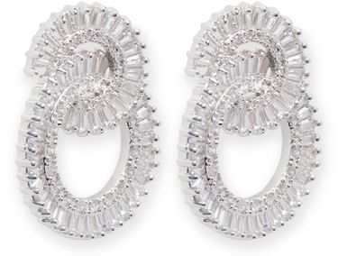 Description : Earrings, floating effect, mix of bands, gemstones, built-in clasp at the back, sold as a pair.