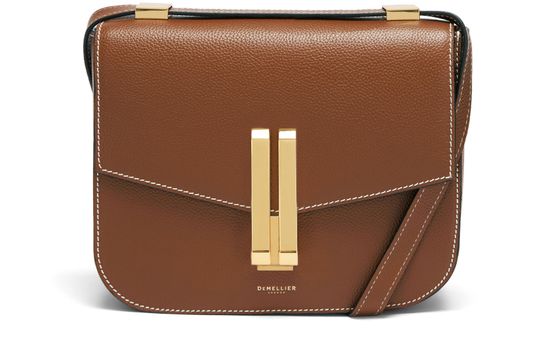 Reveal Demellier's Vancouver shoulder bag, crafted from smooth leather with a single handle. This elegant piece features a flap closure and a zippered interior pocket, ensuring both style and functionality. The front logo in gold letters adds a touch of sophistication, making it a must-have accessory.