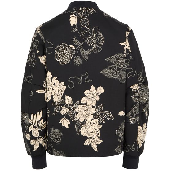 Reveal Moncler's Vandea bomber with a refined floral print. This chic design features a short cut, high neck, and practical side pockets. Its sleek zipper closure and long sleeves make it an essential piece for any modern wardrobe.