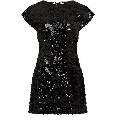 • Description : sequin details, visible stitching, mini dress, crew neck, short-sleeved, cocktail & evening, a-line cut, fitted waist.