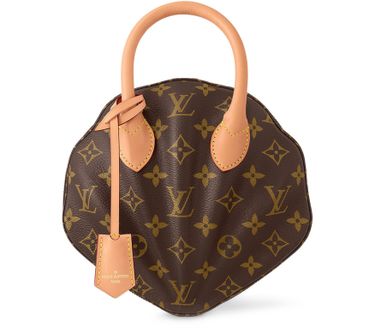 The distinctively shaped Venus bag is made from Monogram & Monogram reverse canvases with cowhide-leather trim and ornamented with a key bell in matching leather. This unique bag offers multiple carrying options: it can be hand-carried with its two top handles or worn short on the shoulder and cross-body, thanks to its adjustable and removable leather strap.
