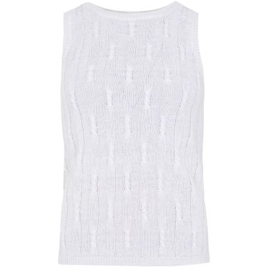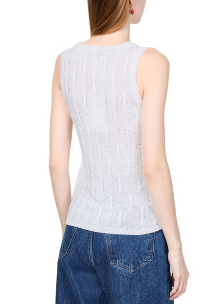 Max Mara's Venusia linen knitted tank top showcases a sleeveless design with a classic crew neck, perfect for warm days. Its regular length and visible stitching add a touch of sophistication, making it an ideal choice for layering or wearing alone. Elevate your wardrobe with this timeless piece.
