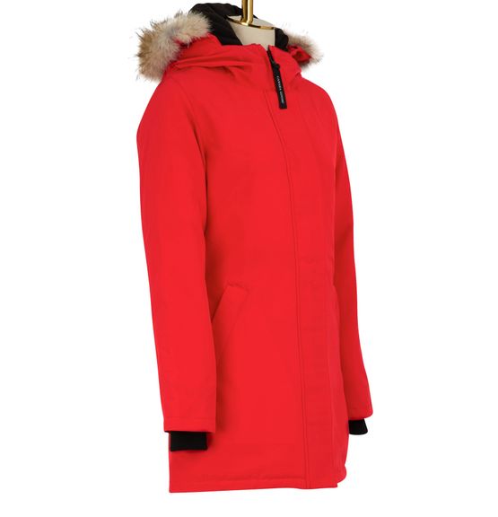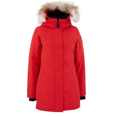 • Details : Canada Goose's Victoria parka is slightly fitted at the waist to emphasise your figure. The hood features a very elegant coyote fur trim. Removable and adjustable hoodBackpack straps inside. Adjustable fit with elastic waist straps. Two external hand warmer pockets, fleece-lined and snap-fastened.