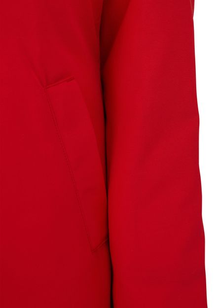 • Description : long-sleeved, appliquéd logo, logo on the side, concealed zipper and snap fastening, side welt pockets, short, patch detail, fur detail, hood.