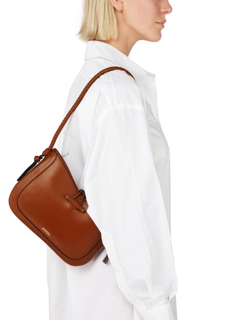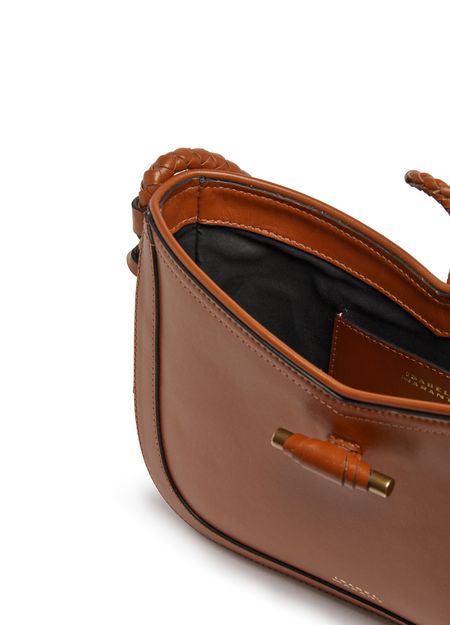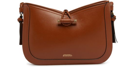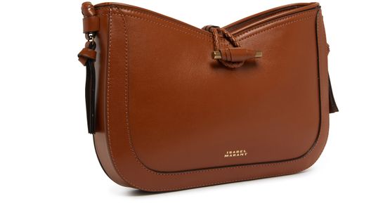 Isabel Marant's Vigo leather flap bag features a thin strap and front logo for a chic, minimalist look. The visible stitching adds a touch of craftsmanship to the design. The bag offers a single compartment for essentials, making it an ideal everyday accessory for the modern woman.