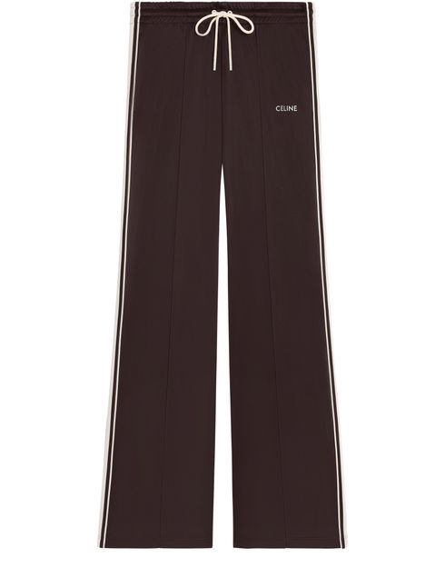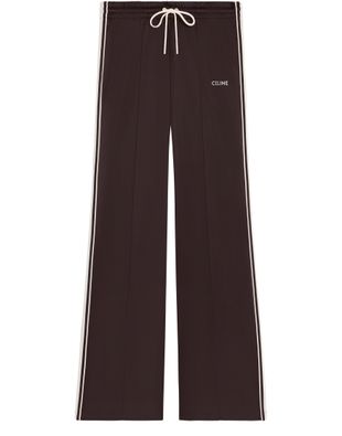 Elevate Celine's vintage tracksuit pants in double jersey. Featuring a classic fit and low-rise design, these pants offer comfort with two side pockets and contrasting side bands. The elasticated waistband with adjustable drawstring and Celine Paris-engraved metal aglets adds a refined touch, crafted in Italy.