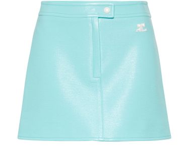 The vinyl skirt reedition is a short skirt with a buttoned zipper closure for easy wear. It features a subtle front logo for a touch of branding. The slim fitting cut flatters the body, creating a sleek and modern silhouette. Perfect for adding a touch of edgy elegance to any outfit.