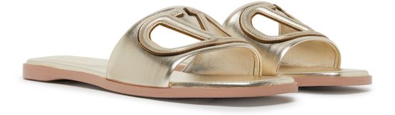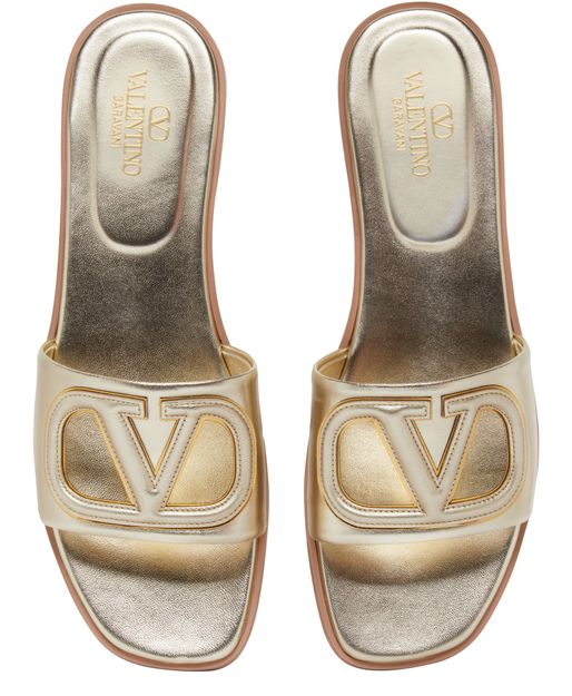 Valentino's Vlogo Cut Out sandals showcase an open round toe design, perfect for effortless elegance. With flat soles and stylish straps attached, these sandals effortlessly blend comfort and sophistication. The prominent front logo adds a touch of luxury, making them an ideal choice for any chic occasion. Step into style.