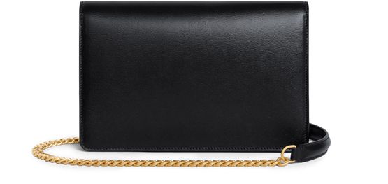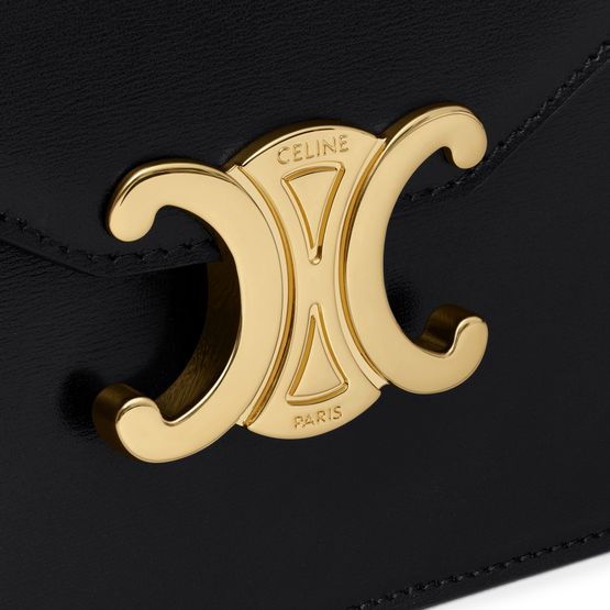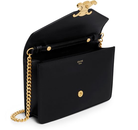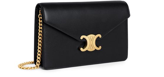 Celine's Wallet on chain Triomphe in shiny calfskin is a stunning blend of elegance and practicality. With its sleek design and versatile carrying options, it effortlessly transitions from hand carry to shoulder and cross-body styles. The Triomphe metallic snap button closure reveals a spacious compartment, six credit card slots, and a flat pocket, making it a perfect companion for any occasion.