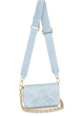 Part of the Bubblegram line, this Wallet on Strap is crafted from soft, padded calfskin, embroidered with the iconic Monogram pattern. This practical, on-trend wallet, which is secured by a magnetic flap, comes with a sporty nylon strap for shoulder or cross-body carry. When the strap is removed, it transforms into a chic, evening-ready clutch.