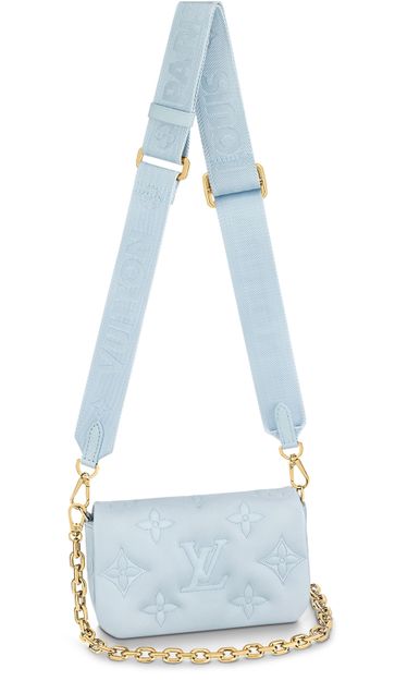 Part of the Bubblegram line, this Wallet on Strap is crafted from soft, padded calfskin, embroidered with the iconic Monogram pattern. This practical, on-trend wallet, which is secured by a magnetic flap, comes with a sporty nylon strap for shoulder or cross-body carry. When the strap is removed, it transforms into a chic, evening-ready clutch.