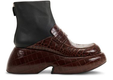 • Description : Combination of textures, thick outer sole, unique heel, back zipper, tortoiseshell pattern.