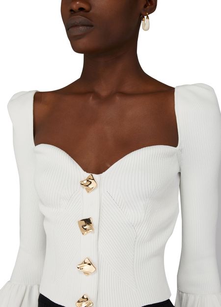 White Ribbed Knit Cardigan