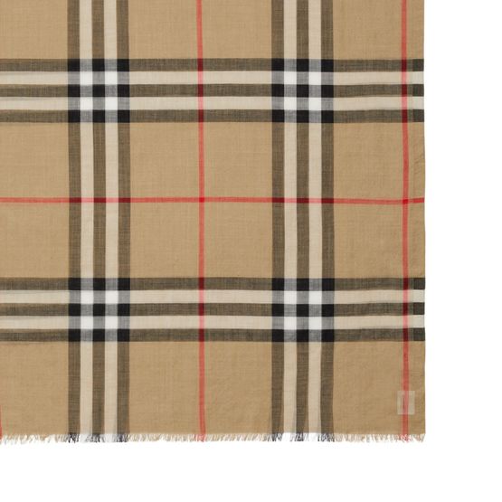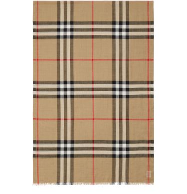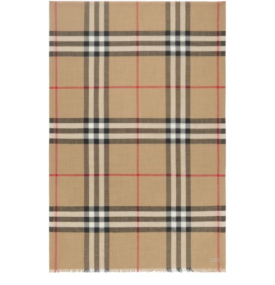 Reveal Burberry's wide check wool silk scarf, a statement piece defined by its iconic pattern and refined fringed edges. This essential accessory brings a touch of sophistication to any ensemble, offering both warmth and timeless appeal for the modern wardrobe.