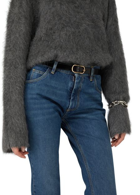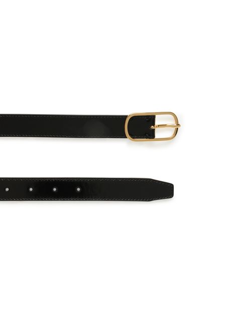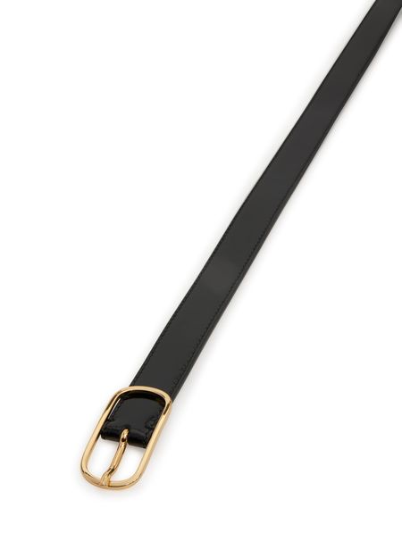 Wide oval buckle leather belt