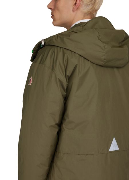 Moncler Grenoble's Windbreaker jacket showcases a high-neck design that shields against the chill. Crafted from warm fabric, it features a concealed zipper for a sleek look. Front pockets offer practicality, while snug cuffs enhance comfort, making it the perfect companion for adventurous outings in unpredictable weather.