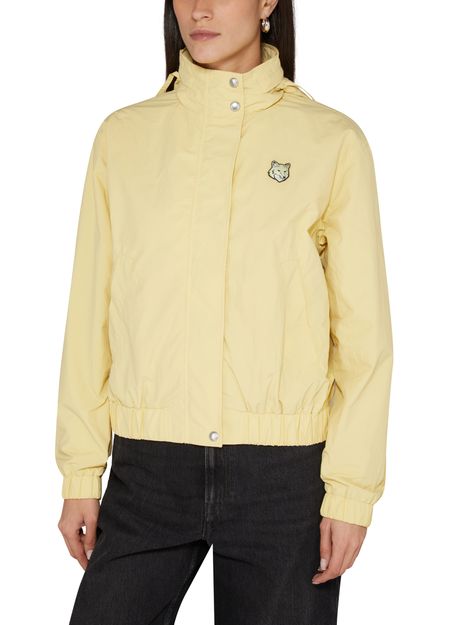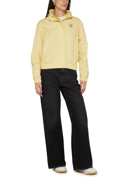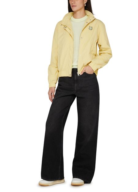 Maison Kitsuné's Windbreaker showcases a short, long-sleeved silhouette with a high neck, featuring a concealed zipper and snap fastening for a sleek finish. The front logo and appliquéd logo on the chest add a stylish touch, complemented by embroidered details and side welt pockets, while the logo at the back label enhances its appeal.