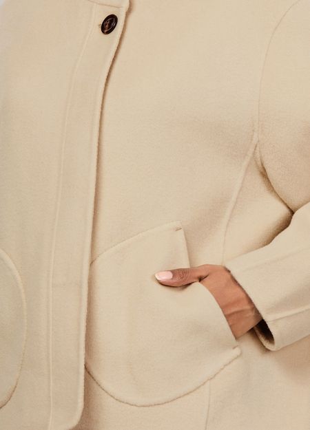Reveal Soeur's windsor wool coat, a short, long-sleeved piece with a high neck and button fastening. Patch pockets add a practical touch, while the refined silhouette ensures effortless style. Perfect for elevating both casual and polished looks, this coat seamlessly adapts to any occasion.